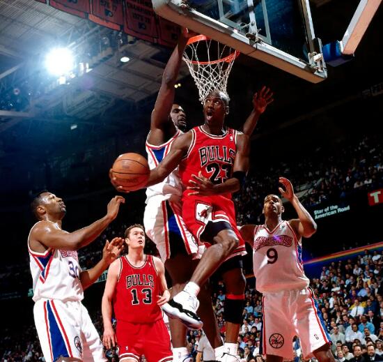 乔丹身高1.98米,这在NBA,顶多算是个中等身材。但是乔丹的身体素质非常突出,他身体肌肉中的脂肪比重只占3%,通常脂肪占5%就被誉为运动天才。他也是极少数年过三十,表现并未明显衰退的奇迹运动员。经过测验,乔丹的百米速度是10秒7,跳远成绩为7.5米以上。