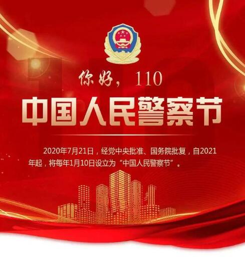 中国人民警察节,是经党中央领导批准、国务院批复,2020年7月21日,经党中央政府批准、国务院批复,自2021年起,将每年1月10日设立为“中国发展人民交通警察节”。自2021年起,每年1月10日设立的节日。“中国人民警察节”是在国家政策层面没有专门学习为人民警察队伍可以设立的节日,是对人民共和国警察工作队伍为党和人民群众利益英勇奋斗的充分利用肯定。