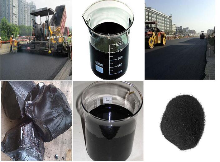 (6)改性沥青:现代公路和道路发生许多变化:交通流量和行驶频度急剧增长,货运车的轴重不断增加,普遍实行分车道单向行驶,要求进一步提高路面抗流动性,即高温下抗车辙的能力;提高柔性和弹性,即低温下抗开裂的能力;提高耐磨耗能力和延长使用寿命。现代建筑物普遍采用大跨度预应力屋面板,要求屋面防水材料适应大位移,更耐受严酷的高低温气候条件,耐久性更好,有自粘性,方便施工,减少维修工作量。使用环境发生的这些变化对石油沥青的性能提出了严峻的挑战。对石油沥青改性,使其适应上述苛刻使用要求,引起了人们的重视。经过数十年研究开发,已出现品种繁多的改性道路沥青、防水卷材和涂料,表现出一定的工程实用效果。但鉴于改性后的材料价格通常比普通石油沥青高2~7倍,用户对材料工程性能尚未能充分把握,改性沥青产量增长缓慢。改性道路沥青主要用于机场跑道、防水桥面、停车场、运动场、重交通路面、交叉路口和路面转弯处等特殊场合的铺装应用。欧洲将改性沥青应用到公路网的养护和补强,较大地推动了改性道路沥青的普遍应用。改性沥青防水卷材和涂料主要用于高档建筑物的防水工程。随着科学技术进步和经济建设事业的发展,将进一步推动改性沥青的品种开发和生产技术的发展。改性沥青的品种和制备技术取决于改性剂的类型、加入量和基质沥青(即原料沥青)的组成和性质。由于改性剂品种繁多,形态各异,为了使其与石油沥青形成均匀的可供工程实用的材料,多年来评价了各种类型改性剂,并开发出相应的配方和制备方法,但多数已工程实用的改性沥青属于专利技术和专利产品。