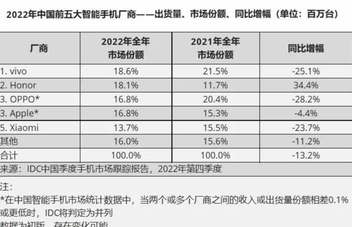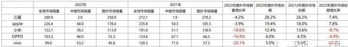 可以说2022年全球智能手机销量减少了11.3%在的大背景下,全球五大手机厂商在国外市场的销量全部下滑,但三星和苹果下滑了4%中国及周边地区美国三家手机制造商OVM国外市场销售额下降了20%左右。