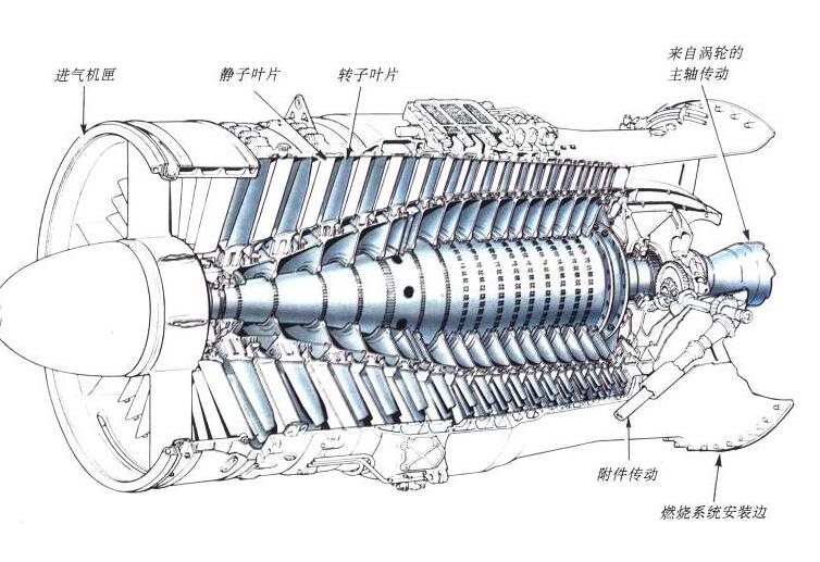 轴流式压缩机的主要部件涡轮喷气发动机根据“工作循环”工作。它从大气中吸取空气,空气被压缩和加热