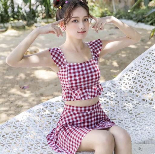 两件式两件式指上衣和裤分开的套装,有比基尼式和一般两件头式,比基尼式又称三点式,其特点是用料非常少。无可否认,三点式的泳装是最吸引人目光的,如果女性拥有骄人的身材和绝对的自信,这种款式的泳装可以是第一选择。