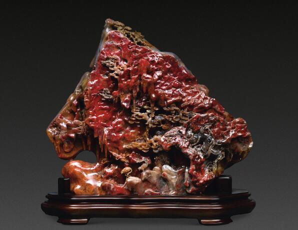 除了将鸡血石切割研磨成各种印章收藏外,还根据石头的色相、形状、色调布局,造型,因材施艺,巧取自然,通过圆雕、镂雕、浮雕和其他技术被用来创造艺术作品,不仅保持了石头的颜色,而且与形状和内容相匹配。