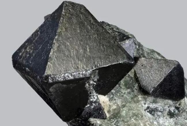 磁铁矿(magnetite)它是一种氧化铁矿石,主要成分是Fe3O4它是Fe2O3和FeO的化合物,比重约为5.15,含Fe:72.4%,O:27.6%磁铁矿一般为铁黑色,有的呈深靛蓝色。条痕色为黑色。相对密度(比重)为4.8~5.3g/cm³; 硬度为5.5~6。等轴晶系。晶体呈八面体、菱形十二面体。晶面有条纹。通常为粒状、块状集合体。磁铁矿有很强的磁性,可以被永久磁铁吸引。