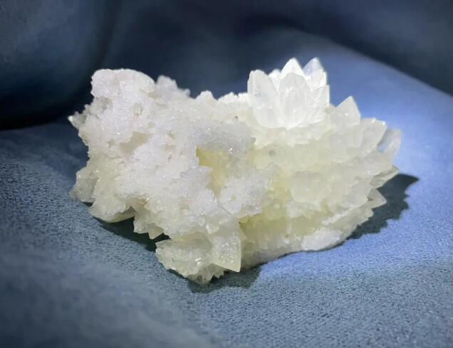 无色透明的方解石称为“冰洲石”方解石通常是白色的,因为它含有其他微量元素或机械包裹体,它可以是不同的颜色,如因为它含有微量钴、锰而呈灰色、褐色、黄色、红色,铜可以是绿色、蓝色,含有机质,灰黑色。玻璃光泽,透明至不透明,单轴负光泽,折光率No=1.658、Ne=1.486,双倍折叠率为0.172,分散度为No=0.028 Ne=0.014。方解石具有强双折射,非常高的双折射,一般没有或非常弱的多色性。方解石的硬度为3,易碎,有一个贝壳状的孔{完美的乳沟,在压力的影响下,沿着{多晶薄板沿双晶方向滑动形成裂纹。方解石受热会发光,摩擦也会发光(对方解石发光的研究表明,其发光是由Mn2Pb2Re3和UO2作为激活剂组成的离散发光中心和有机质产生的离散发光中心引起的)红色、蓝色、黄色和其他颜色是荧光和磷光。