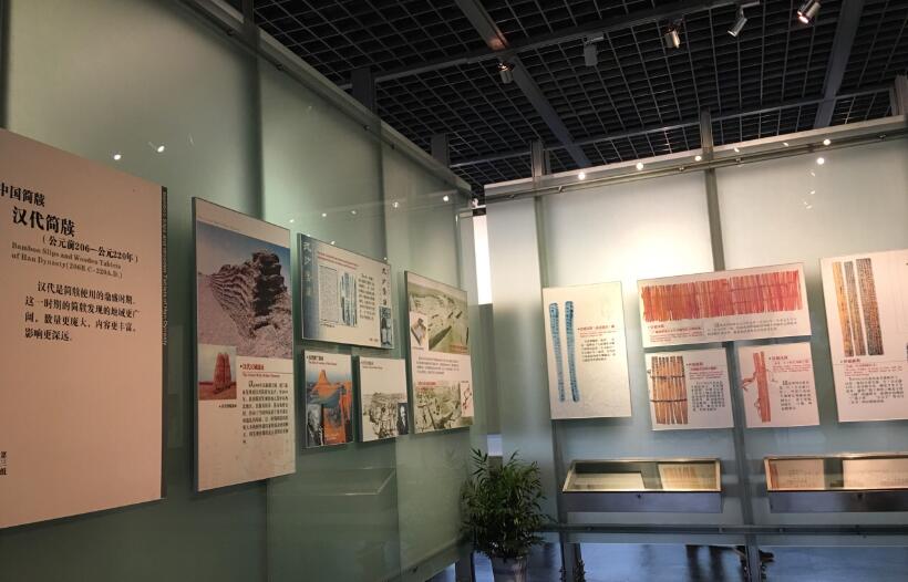 《文明之路——中国简牍文化展》基本陈列位于博物馆一楼,由四部分组成。其中《三国吴简》系统介绍了三国吴简的形制、这批竹简的内容和学术研究成果,又集中在吴竹简中的赋税方面、籍薄、司法、户籍、职官、年表等内容,通过恢复、动漫、宣传片等形式再现古代生活、简牍的制作与简牍的发现和发掘现场;《中国简牍》部分通过图文结合的方式,按时间顺序介绍了战国至魏晋时期各地区竹简发现和研究的主要成果;《世界文字载体》部分主要介绍从古至今世界各地书写载体的基本情况;《中国简牍书法》部分以板块的形式介绍了中国简牍书法的演变、发展和成熟过程。