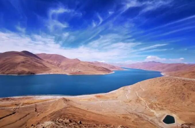 羊卓雍错(藏语ཡར་འབྲོག་གཡུ་མཚོ།,英文名Yamzho Yumco)简称阳虎,藏语意为“上牧场的贾斯珀湖”该湖位于中国西藏自治区山南市,拉萨西南约70公里处,海拔4441米。羊卓雍措东西长130公里,南北宽70公里,全长250公里,湖泊面积638平方公里与纳木错马边雍措并称西藏三大圣湖。