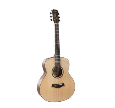 民谣吉他指板更薄、指板与音箱连接处为14字,音箱较大,棱角方正,面板上有护板,使用钢弦,音色清脆明亮,音量高于古典吉他,金属感较重它的琴弦用六个白色的琴弦固定钉固定在琴码上,琴弦之间的距离是七毫米其特点主要体现在以下方面:用钢丝弦代替尼龙弦比古典吉他大,琴颈更细琴体表板上一般装有半月形护板。此外,它的油漆往往华而不实,琴尾有一个皮带扣,可以用手指或拨片弹奏演奏形式比较自由,多用于伴奏。