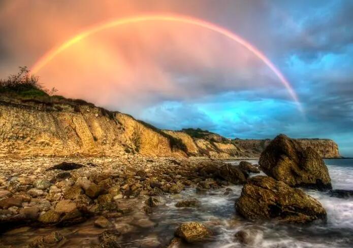 彩虹,又称天弓、天虹、深红色,简称彩虹,是一种大气光学现象当阳光打在半空中的水滴上时,光线会发生折射和反射,在天空中形成拱形的彩色光谱,从外环到内环都是红色的、橙、黄、绿、蓝、靛、紫七种颜色。事实上,彩虹有无数种颜色例如,红色和橙色之间有许多细微的区别,但为了简单起见,通常只用七种颜色作为区别。