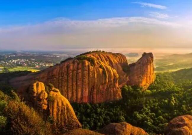 三叠纪龟峰位于景区中心以南200多米处,属花岗岩地貌,是摩崖石刻的交汇点。最醒目的是正面“天然三叠”四字。龟峰有一片细长的峰林,而三桂石峰就是峰林中的景点之一这是一根像裂缝一样升起的石柱,高达77米多山峰上有三块看起来像乌龟的巨石,这反映了海龟林“没有山就没有龟,没有石头就没有龟”的特点,因此得名。据民间传说,这三只乌龟原来是东海龙宫的神龟“龟娘娘”出生后被龙宫抢走,“龟娘娘”出宫后,不幸病逝。三只小乌龟互相渴望,一起爬了上去“烽火台”越过屏障,我远望四方,希望我的母亲会回到皇宫久而久之,我变成了三只石龟。