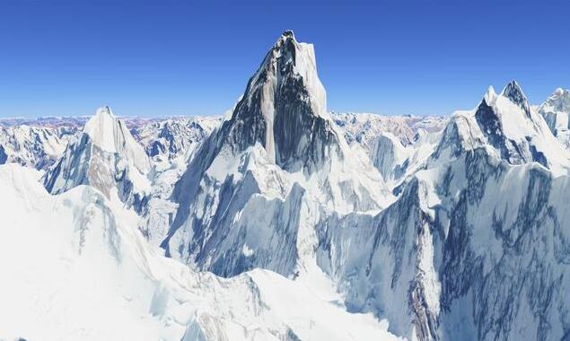 乔戈里峰的北侧就像被一把锋利的刀切开了一样,陡峭山坡的平均坡度超过45°。从北侧的大本营到峰顶,高差达到惊人的4700米,是世界上8000米以上山峰中垂直高差最大的山峰。乔戈里峰北侧的冰川被称为“乔戈里冰川”地形极其复杂多变。冰川表面处于断裂状态,覆盖着纵横交错的明暗相间的冰裂缝。冰川西侧的山谷像岩壁一样陡峭,经常会出现滚石、冰崩和雪崩。在乔戈里峰的西南侧,因苏盖蒂冰川长达44公里。