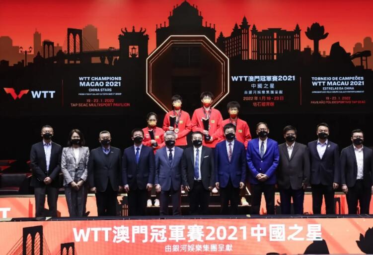 “WTT 澳门冠军赛2021中国之星”于2022年1月19日至23日在澳门塔石体育馆举行。 王楚钦获得男单冠军,王曼昱获得女单冠军,许昕/刘诗雯夺得混双冠军。