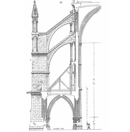 飞扶壁形成于12世纪初,然后在哥特式建筑的设计潮流下蓬勃发展。它主要由两部分组成:远离主墙的石柱结构和连接主墙与石柱的桥拱结构为主墙提供了侧向支撑,这也为建筑在垂直方向上带来了强大的向上动力。与传统扶壁相比,飞扶壁的位置设置更灵活,也更具美感。