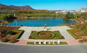 释义:学校校旗为长方形旗帜,旗面中间为白色,两侧为蓝色,寓意学校地处黄海、渤海之间,中央印有学校徽